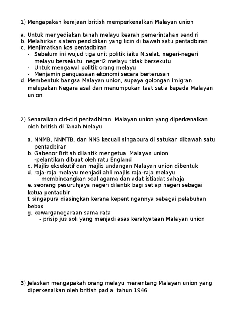 Nota Sejarah Tingkatan 3 Bab 2 Malayan Union Saps Ibu Bapa